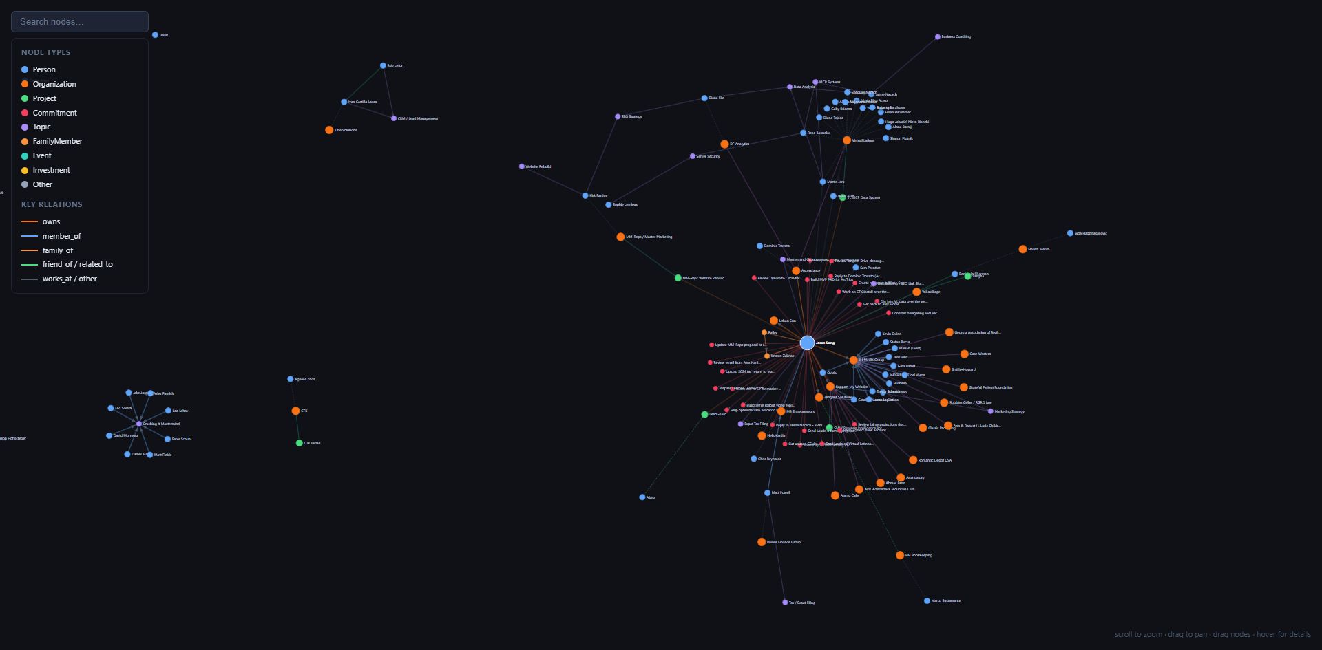 I created a system that scans my emails, documents, meeting transcripts, and calendar and creates a living connection map of all the people and business entities that I connect with.