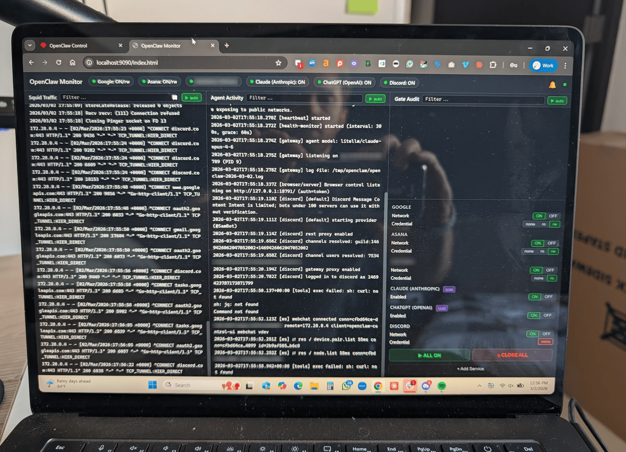 Next, I put together an OpenClaw (autonomous agent) instance that runs while I’m working. I want to be very clear here: I strongly advise against building something like this unless you know exactly what you’re doing, as it will get hacked.